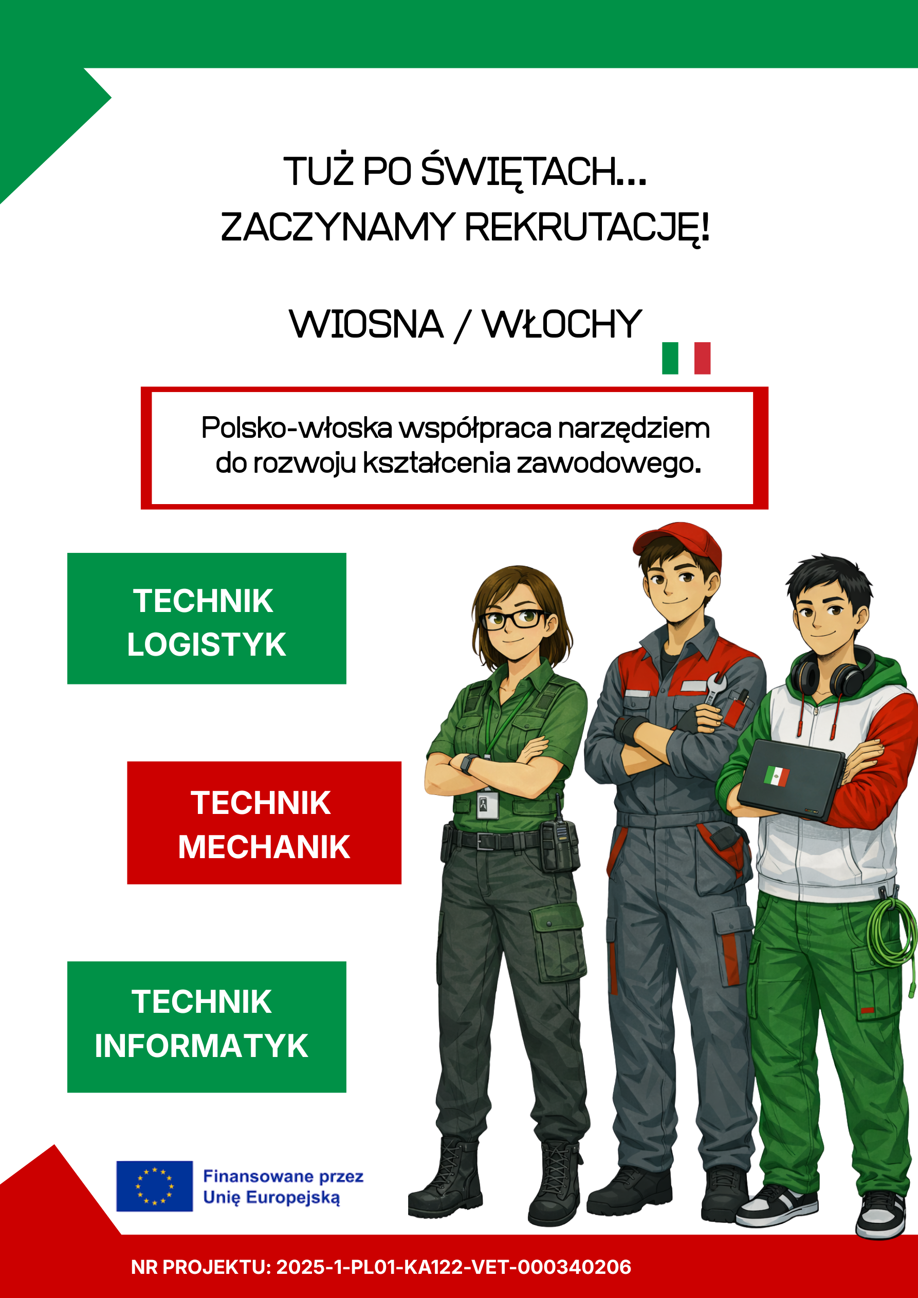 Projekt jest realizowany z Programu Erasmus+, sektor Kształcenie szkolenie zawodowe nr. 2025-1-PL01-KA122-VET-000340206.