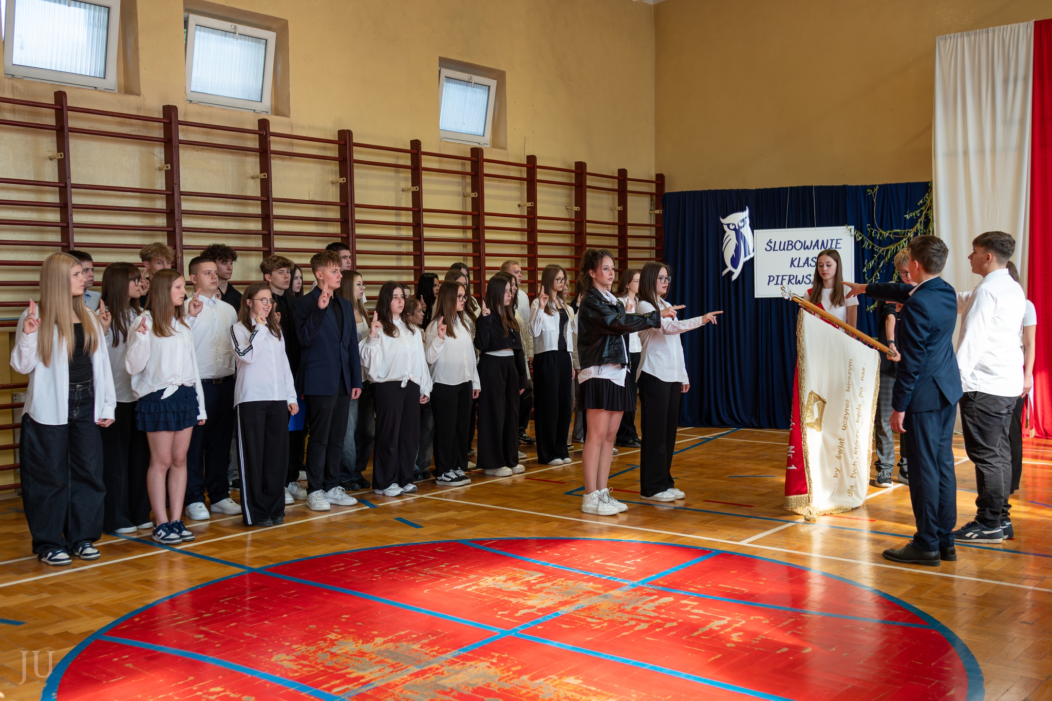 Podczas ceremonii pierwszoklasiści złożyli uroczyste przyrzeczenie, zobowiązując się do rzetelnej nauki, poszanowania tradycji szkolnych oraz odpowiedzialnego reprezentowania naszej społeczności. Wydarzenie miało podniosły charakter – nie zabrakło symbolicznych akcentów, przemówień oraz gratulacji skierowanych do nowych uczniów.