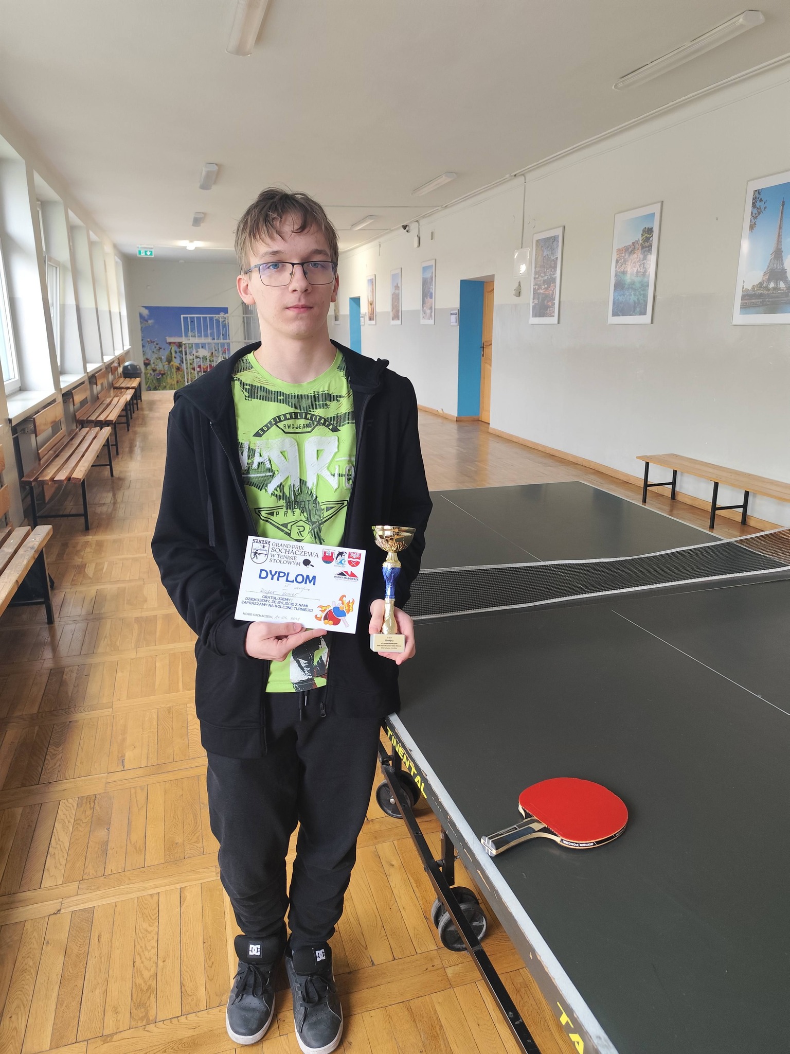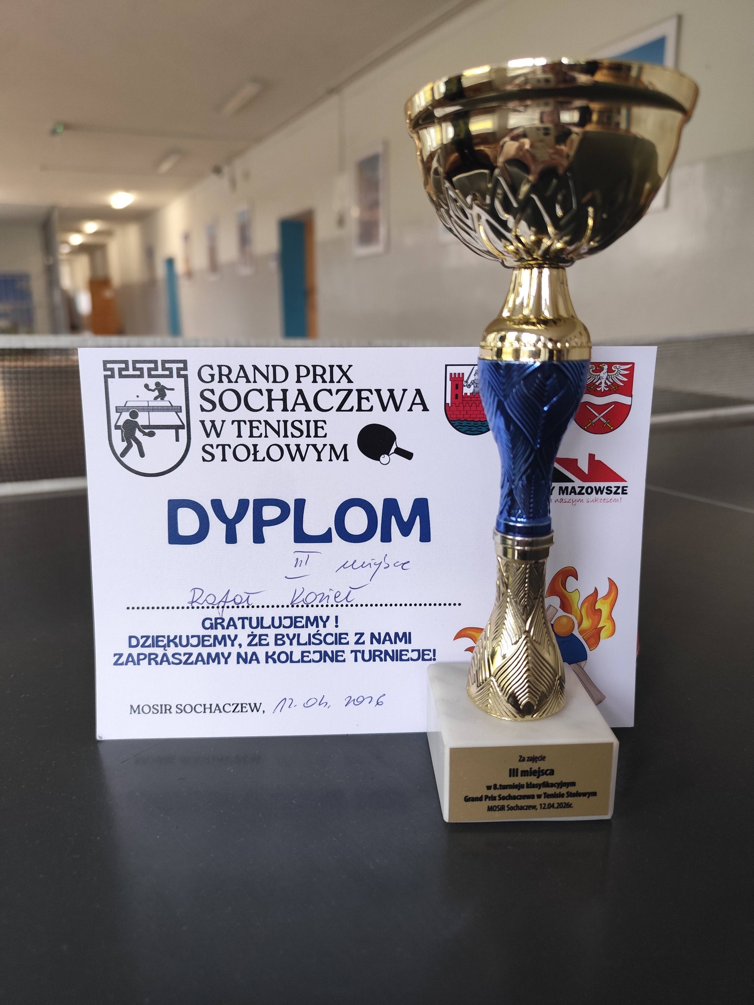 Z ogromną radością informujemy o sukcesie naszego ucznia podczas 8 Turnieju Grand Prix Sochaczewa w Tenisie Stołowym! Rafał Kozieł uczeń klasy pierwszej zaprezentował wysoki poziom sportowy, ogromne zaangażowanie oraz ducha walki, co zaowocowało zdobyciem 3. miejsca w kategorii szkół ponadpodstawowych. To wspaniałe osiągnięcie jest dowodem na jego ciężką pracę, systematyczne treningi oraz pasję do tenisa stołowego. Choć udział w turnieju miał charakter indywidualny, jesteśmy dumni z jego sukcesu i cieszymy się, że rozwija swoje zainteresowania sportowe. Serdecznie gratulujemy i życzymy kolejnych równie udanych występów!
