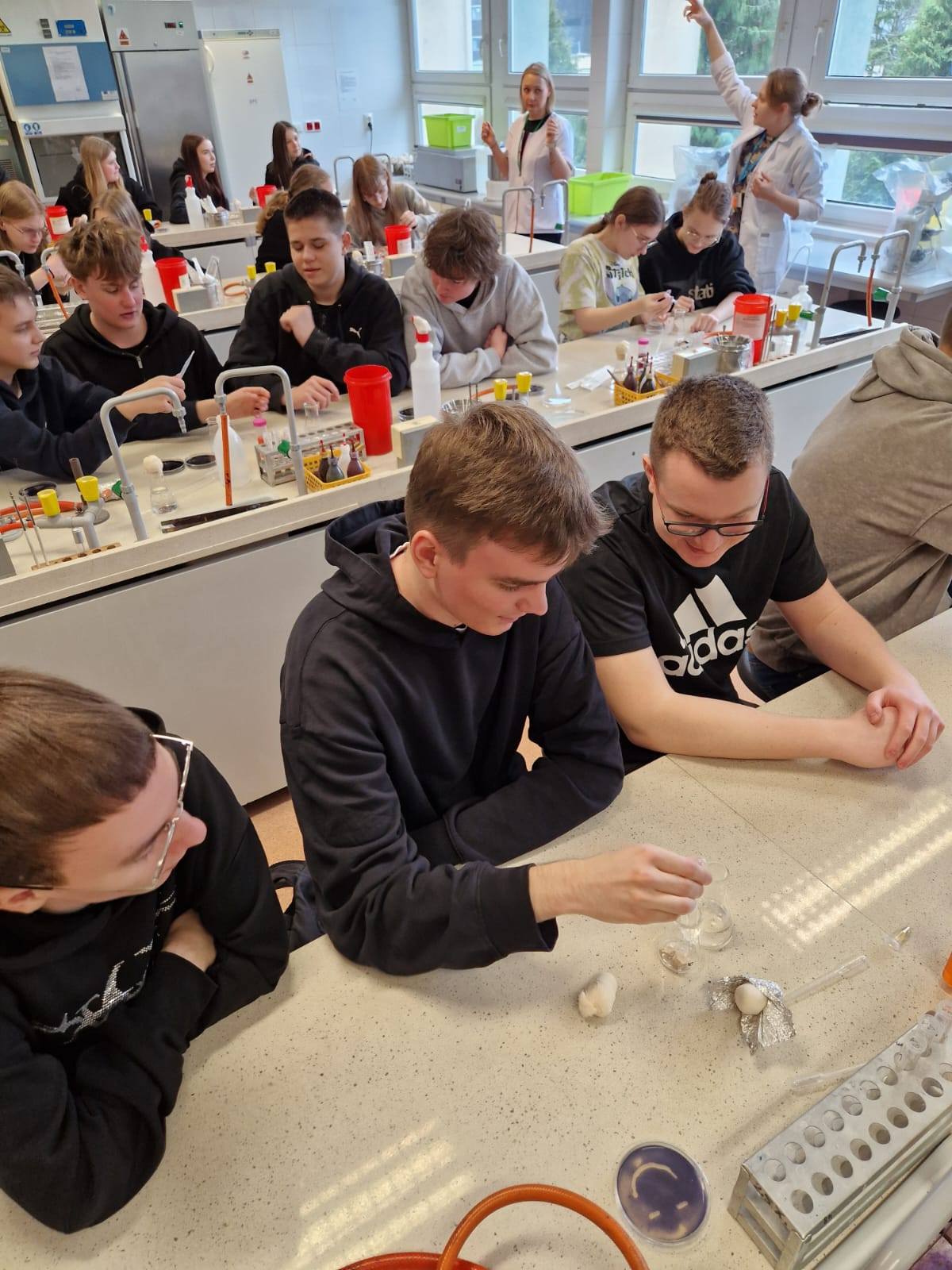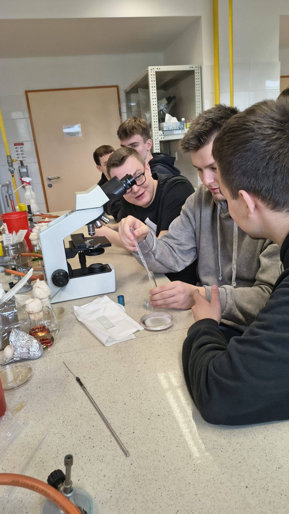 8 kwietnia 2026 uczniowie ZS Nr 1 w ramach szkolnej Innowacji Pedagogicznej "STYL ŻYCIA Z WYBORU" uczestniczyli w warsztatach eksperymentalnych w sali dydaktycznej Instytutu Mikrobiologii, Biotechnologii i Immunologii Uniwersytetu Łódzkiego. Zajęcia „Drobnoustroje jako producenci enzymów” miały charakter praktyczny i były prowadzone pod opieką pracowników naukowych, którzy wprowadzali uczestników w podstawy pracy laboratoryjnej oraz czuwali nad prawidłowym przebiegiem eksperymentów.